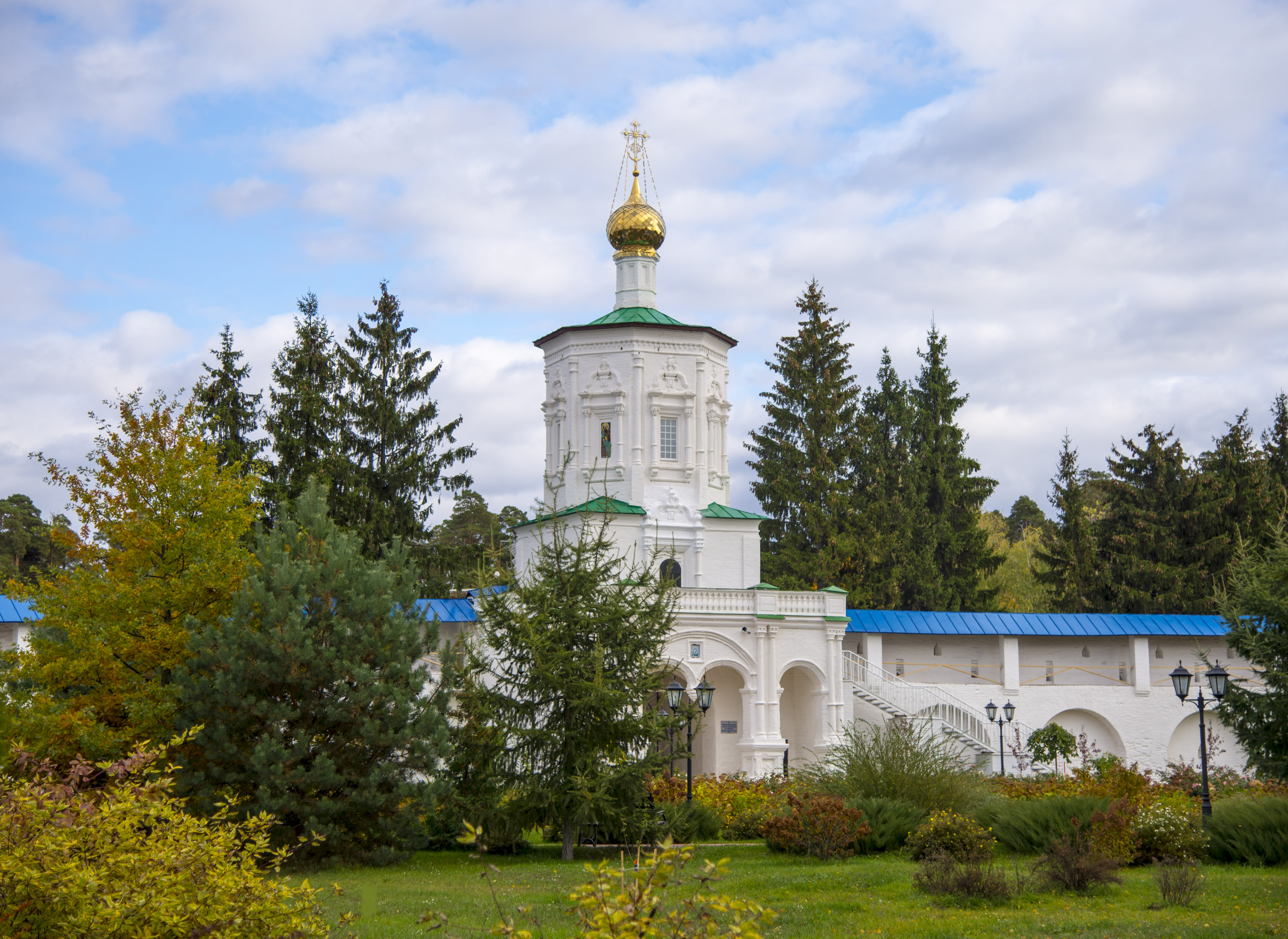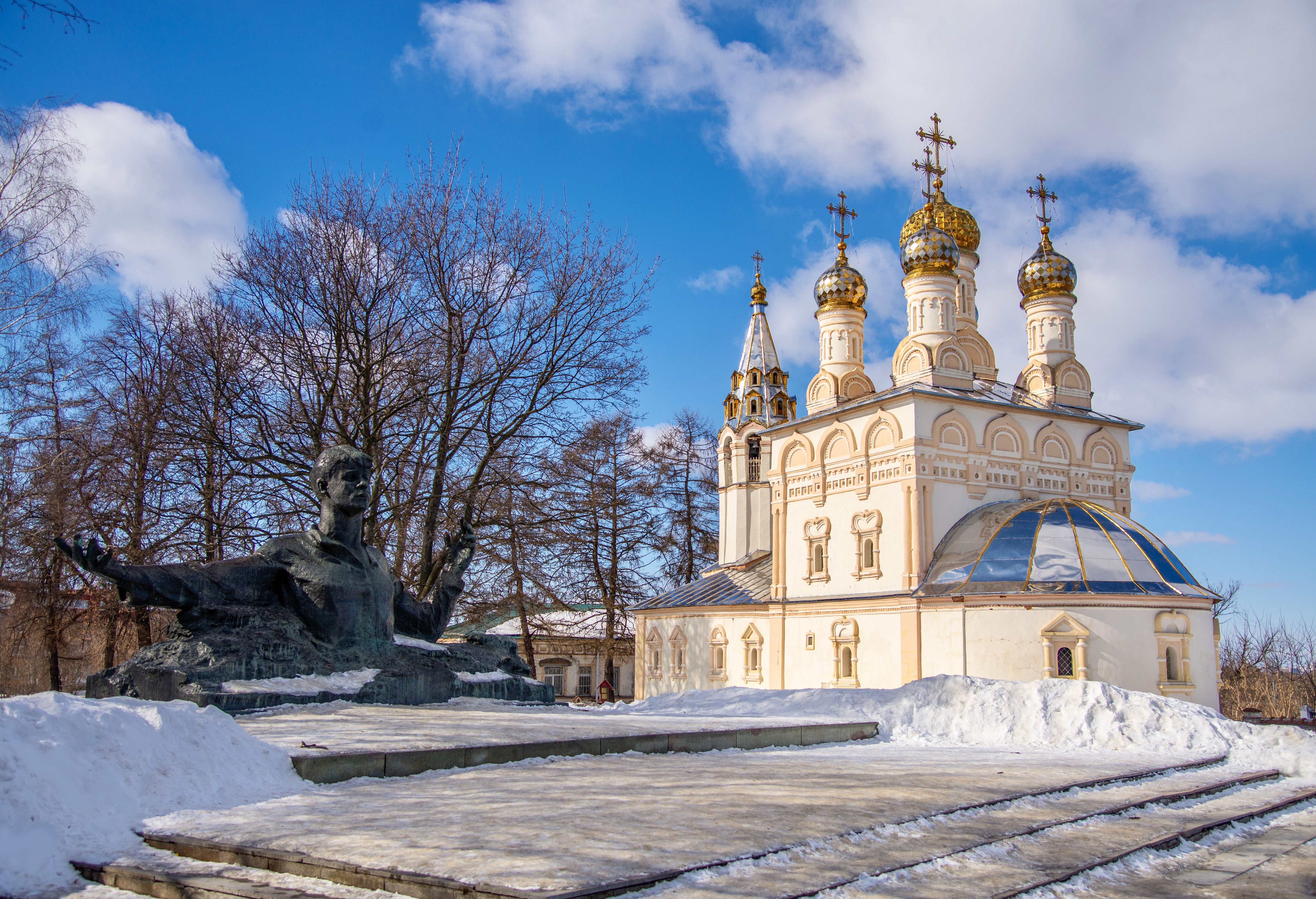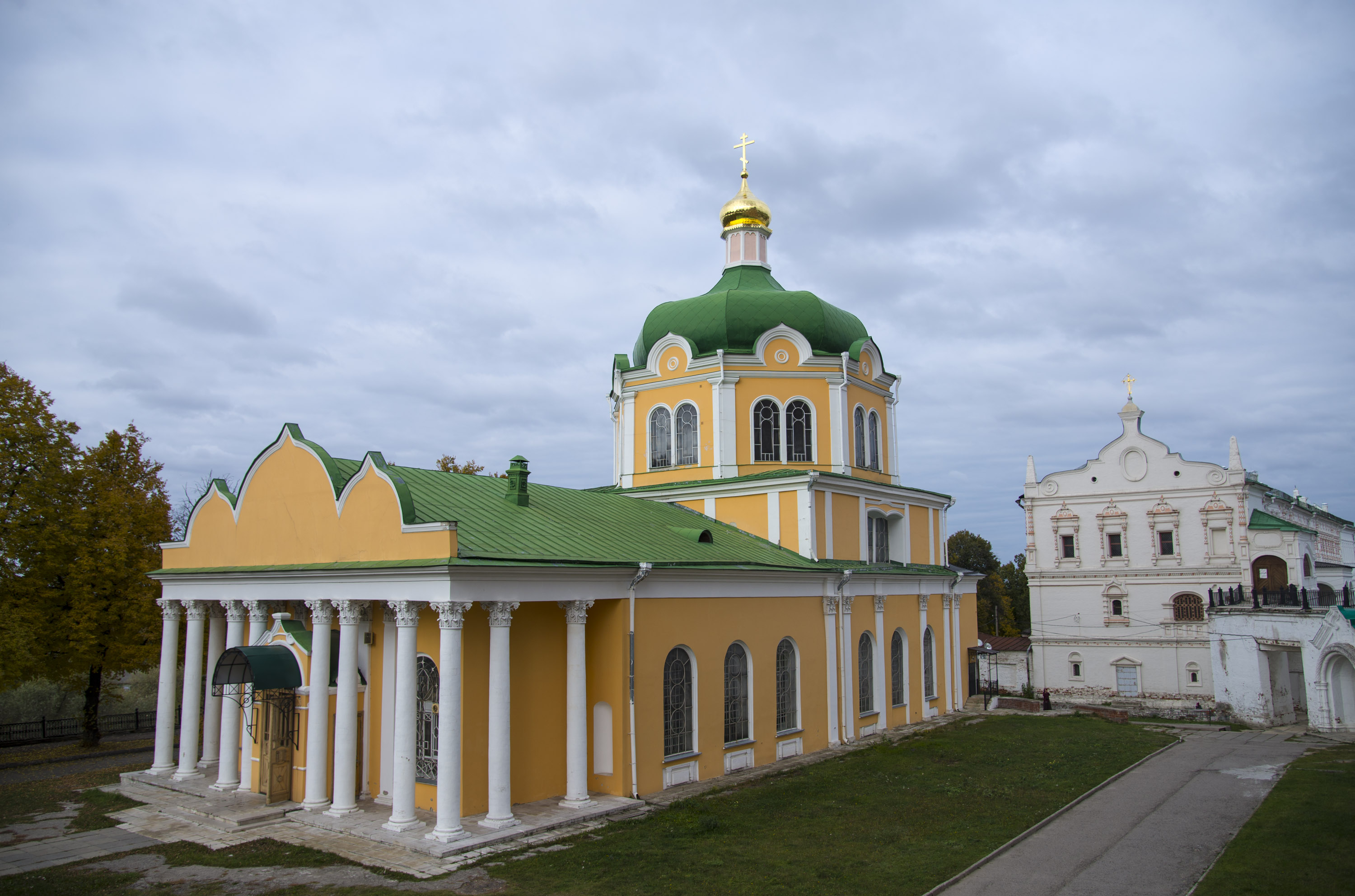 The first wooden Trinity Church was built in 1585 and was destroyed in the Time of Troubles. In 1625-27 Prince Cherkassky built a new wooden church. In 1692 a stone church in the name of the Trinity was build which with some modifications survives to this day.