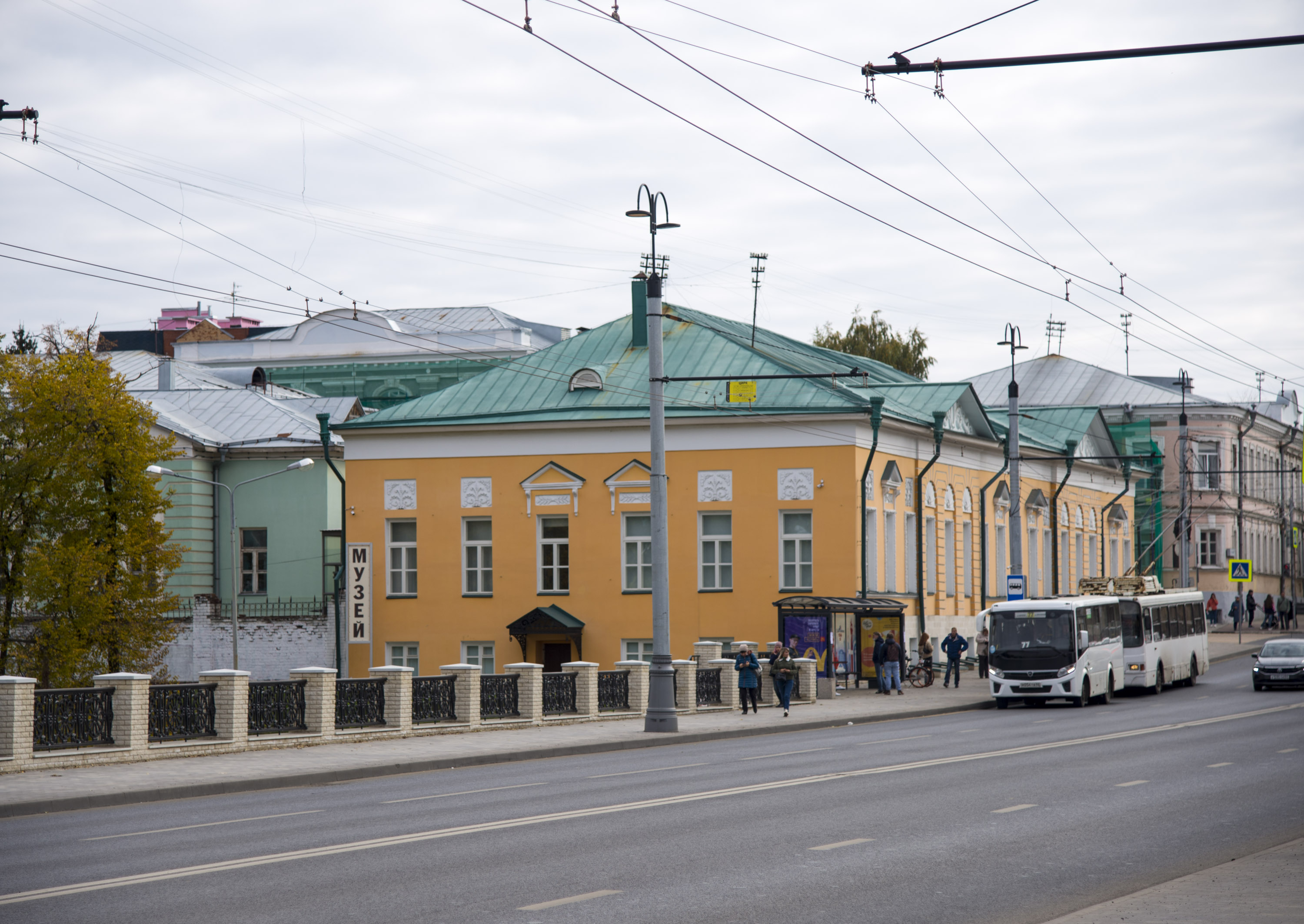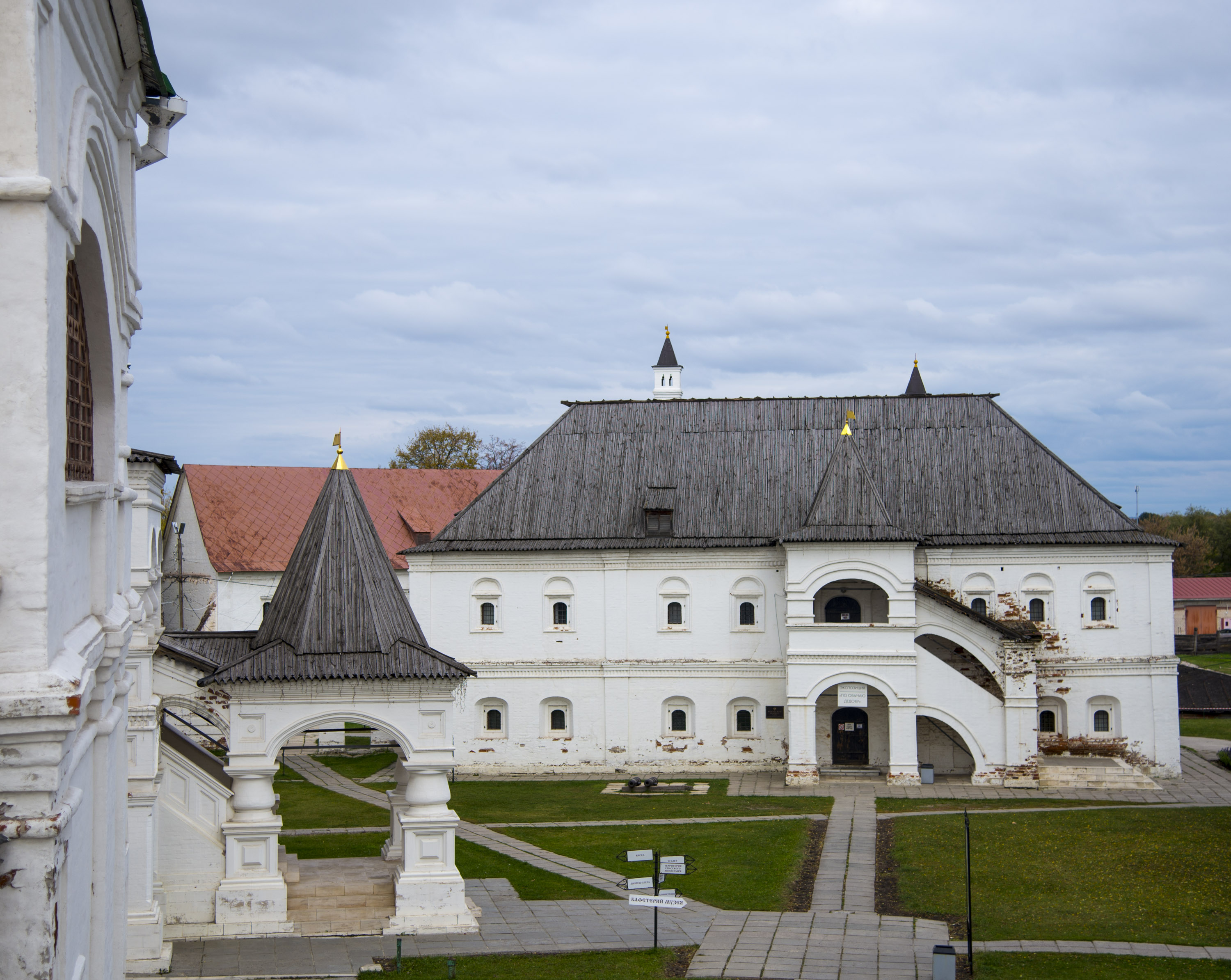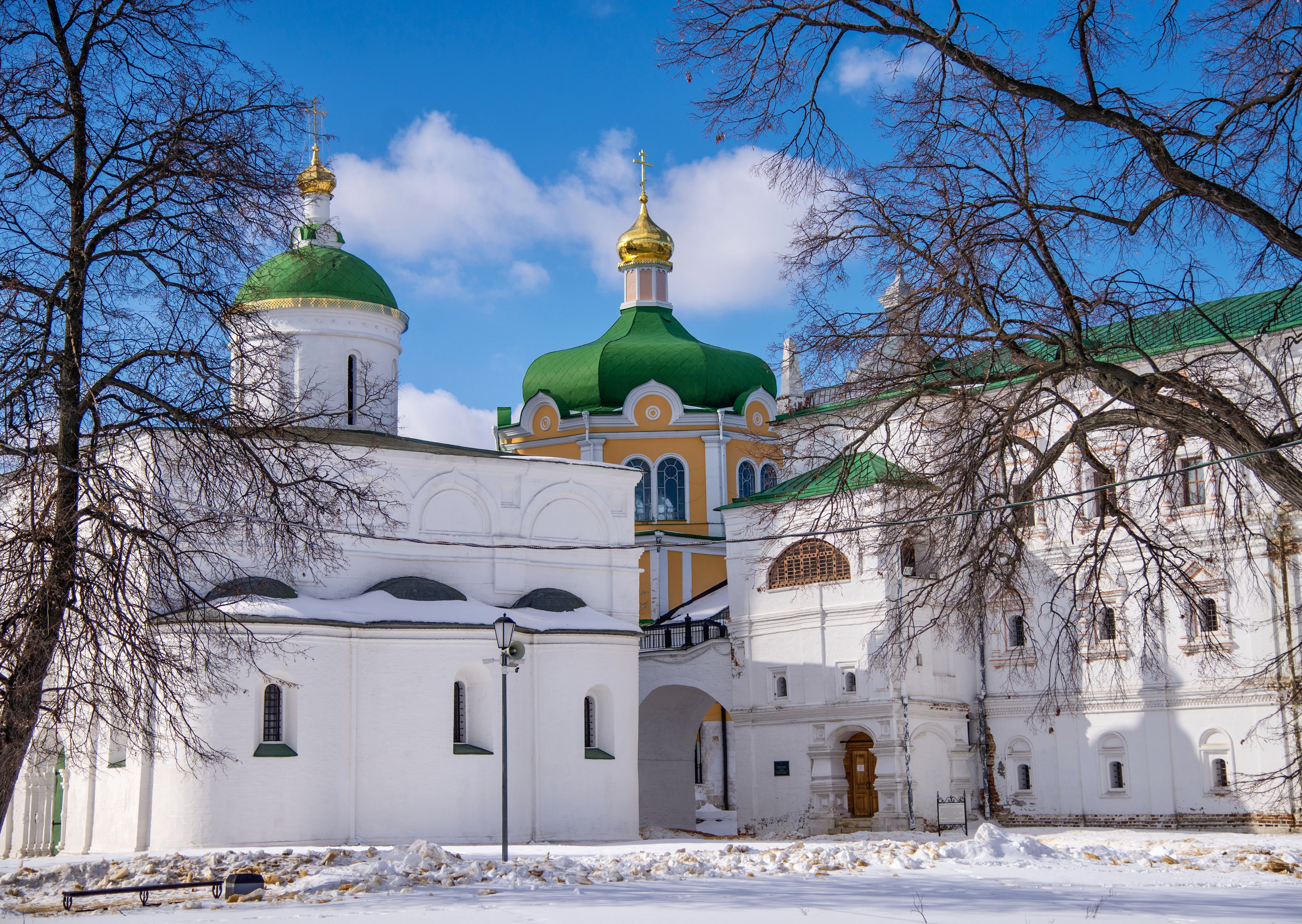 The first wooden Trinity Church was built in 1585 and was destroyed in the Time of Troubles. In 1625-27 Prince Cherkassky built a new wooden church. In 1692 a stone church in the name of the Trinity was build which with some modifications survives to this day.