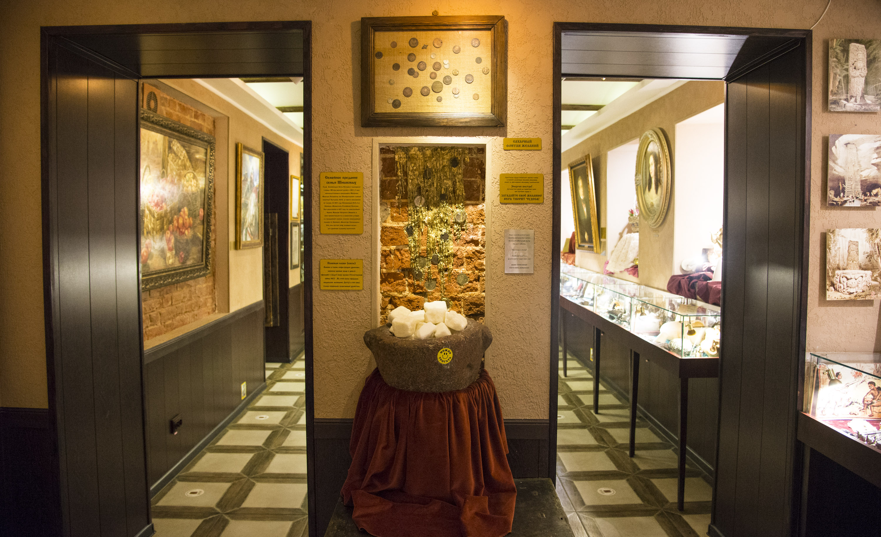 Kuskovo museum complex in Moscow is a summer estate of the Sheremetev family built in 18th century and includes Summer palace, Grotto, Italian house, Kuskovo Church and Tower bell, Hermitage in English landscape garden, the Dutch house and Orangeries. Grotto pavilion was constructed between 1755 and 1761 and was intended to represent the palace of the King of the Seas. Interior was made of whorled seashells of 24 different types which were delivered from the Mediterranean, Red, Black seas, the Sea of Japan, and reservoirs of the Moscow region.