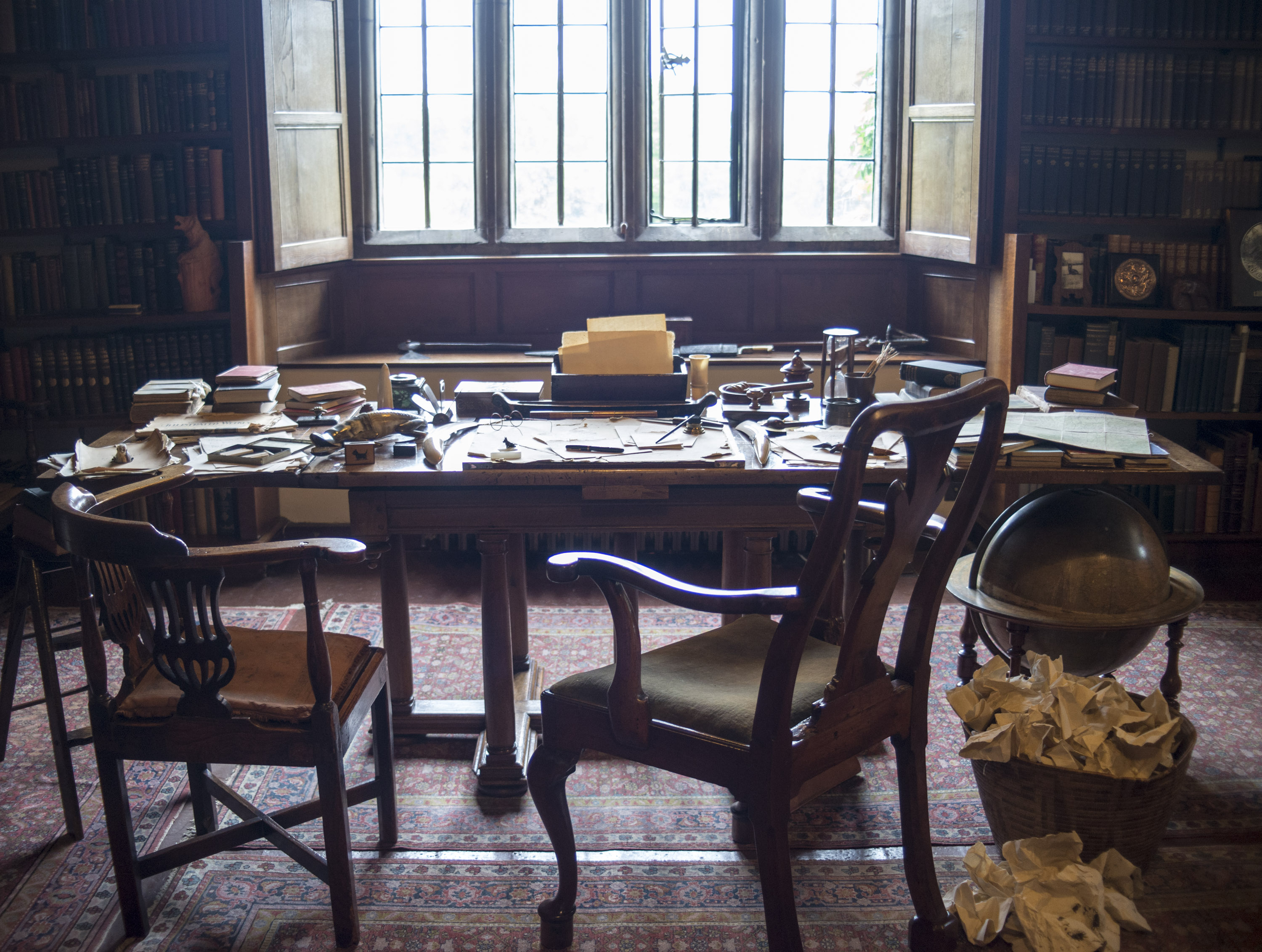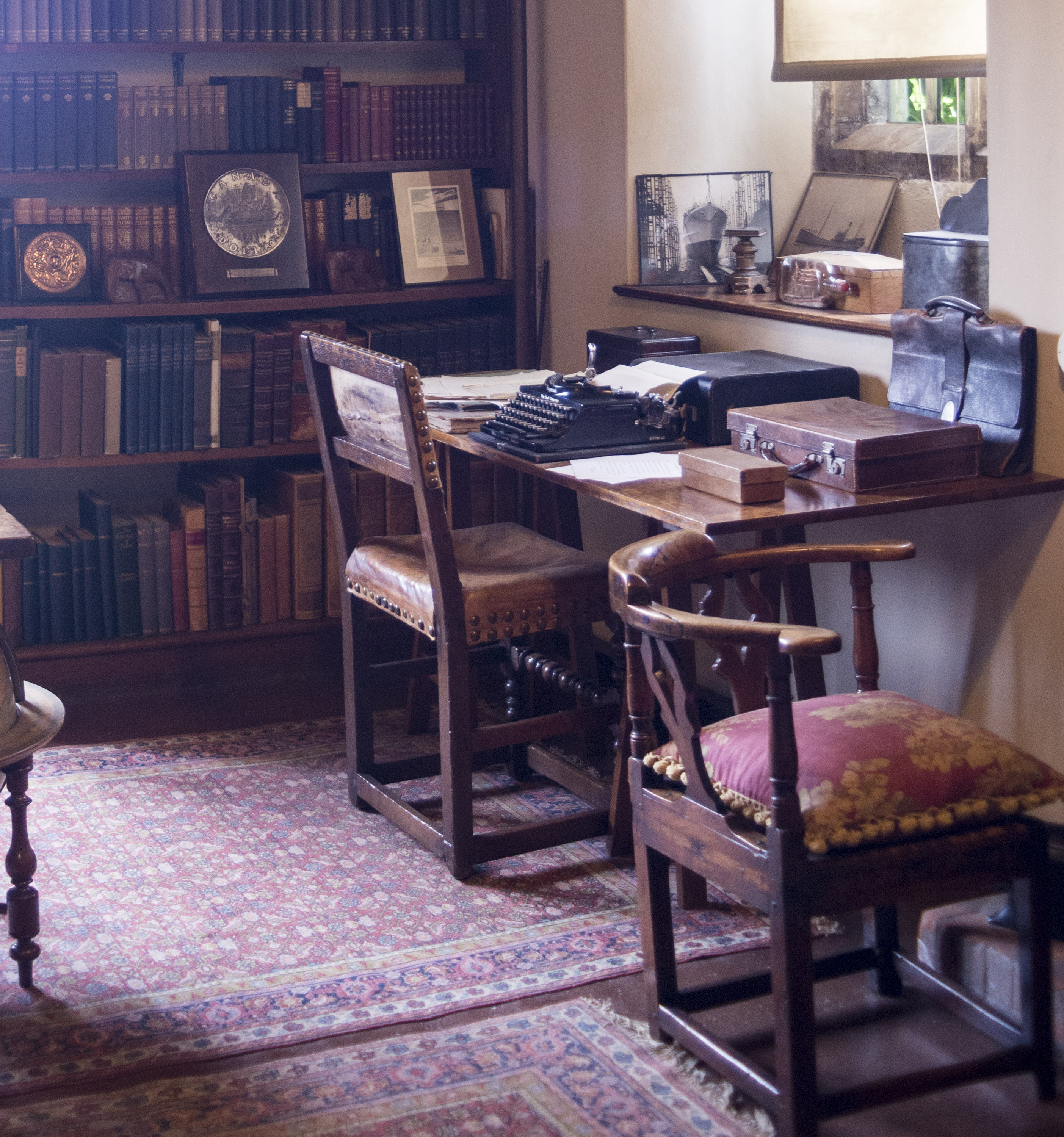 The rooms are much as he left them: artifacts from his Eastern adventures, a book lined study, his Nobel prize certificate for literature, a phonograph playing music.
